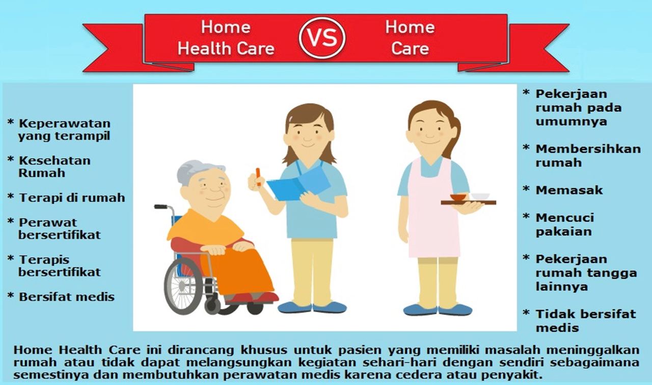 HOME HEALTH CARE adalah berbagai layanan perawatan kesehatan yang dapat diberikan di rumah untuk penyakit atau cedera. Perawatan kesehatan di rumah ini biasanya lebih murah, lebih nyaman, dan sama efektifnya dengan perawatan yang kamu dapatkan di rumah sakit atau fasilitas perawatan terampil.
